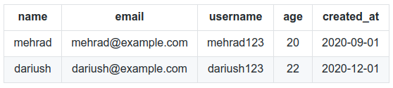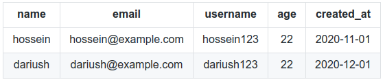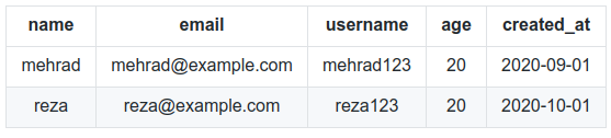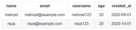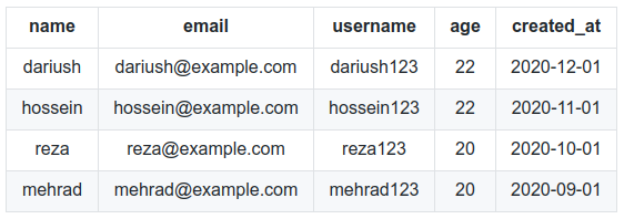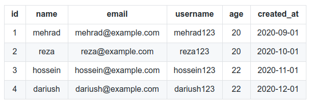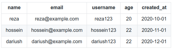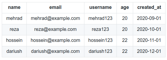 به منظور توضیح هر فیلتر، تصور کنید جدول users ی با این اطلاعات داریم: