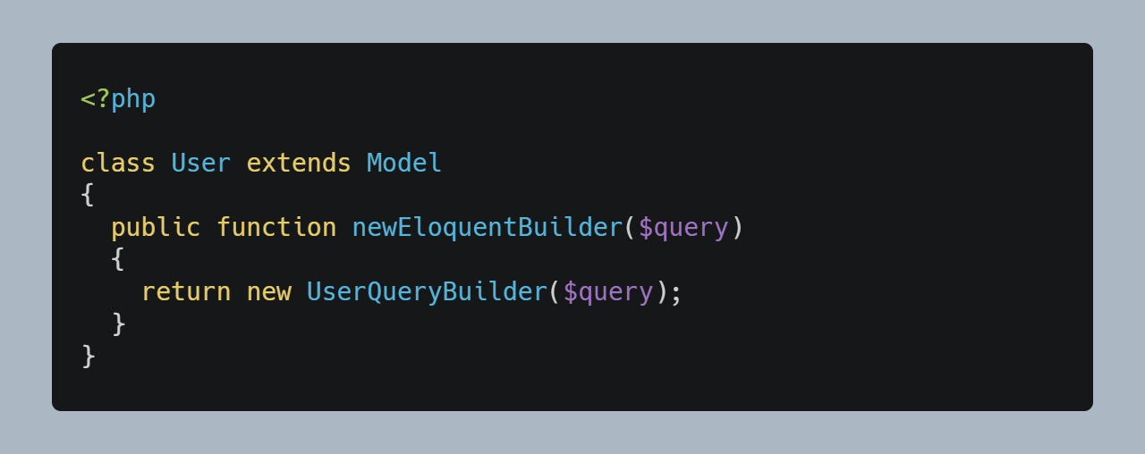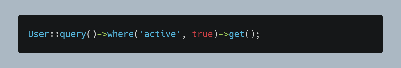 پیشنهاد بعدی برای رمز گشایی از جادوها، استفاده از متد query برای شروع پرسوجوست. هر جایی خواستین از متدهای مربوط به پرسوجو (مثل where) استفاده کنین، به جای فراخوانی static از متد query کمک بگیرین: